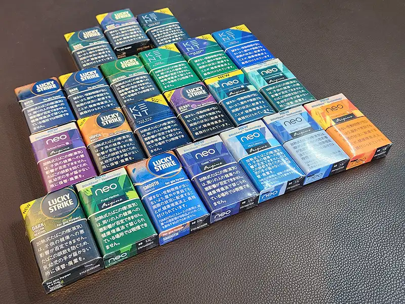太いスティックは、ラッキーストライク、ケント、ネオの3つのブランドから、2025年現在合計20種類以上のフレーバーが発売されています。