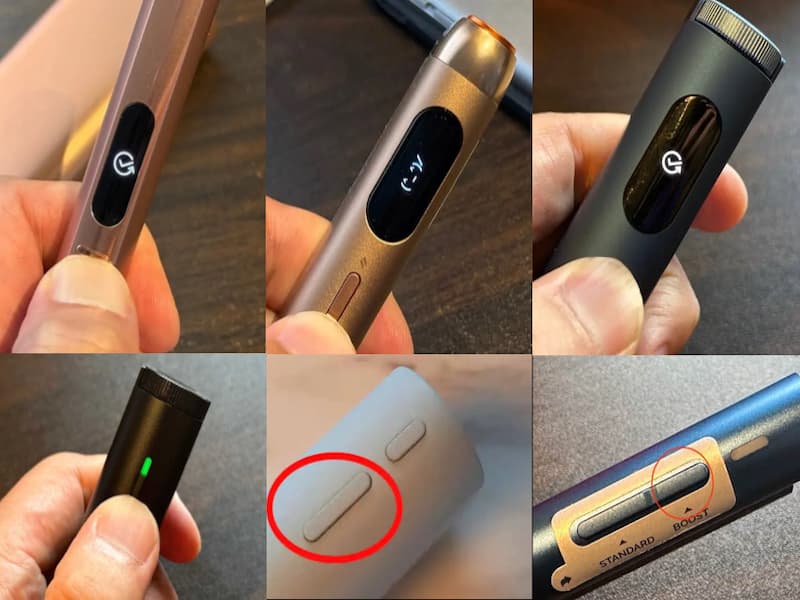 グローハイパーエアのリセットボタンは、本体側面に2つあるボタンのうちの上にある短い方のボタン(ブーストモードのボタン)です。