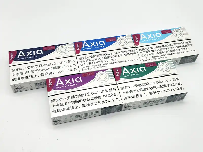 IQOSイルマ専用たばこ「アクシア(AXIA)」は、全部で5種類の銘柄が発売されていて、それぞれの銘柄名と値段は次のとおりです。