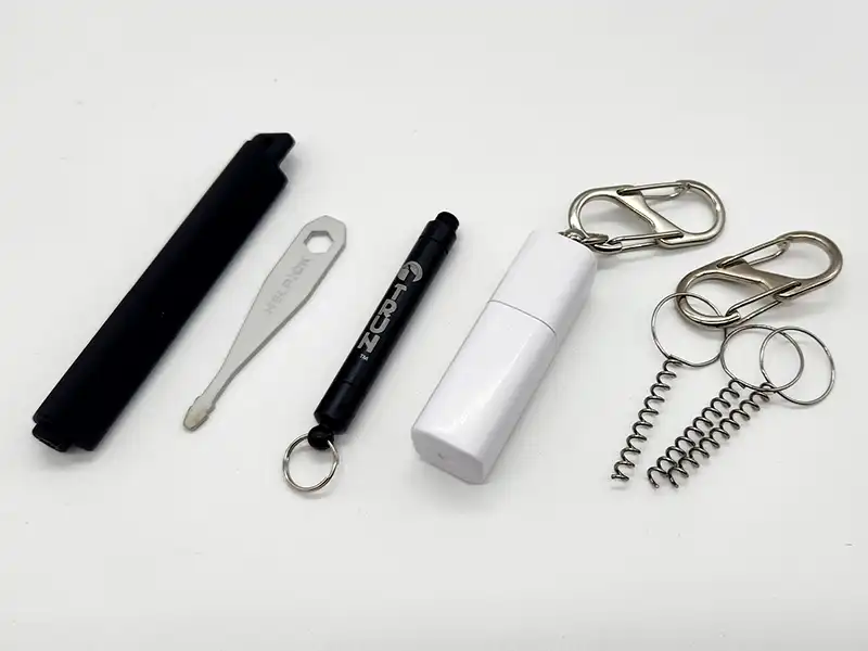 ただし、バネの先端がやや鋭利になっており、ポケットなどにいれて持ち歩くと布地の素材によっては引っかかって最悪ケガする可能性があるかもしれません。
