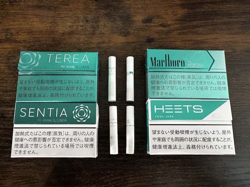 「マールボロ」の後継ブランドは「テリア」、「ヒーツ」は「センティア」のブランドで、すべて同じ名前の銘柄が販売されているので、今まで旧型IQOSを吸っていた方も問題なく移行することができます。