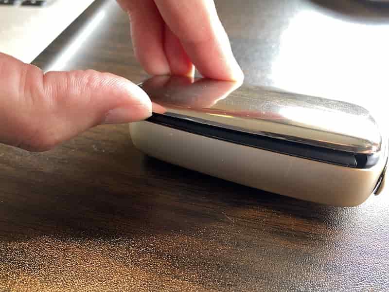 プルームXアドバンスドの蓋(フロントパネル)は、本体と蓋(フロントパネル)の間をひっかけて手前にひっぱるだけで開きます。