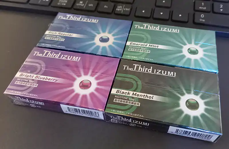 ザ・サードイズミは現在5種類のフレーバーが発売され、レギュラー1種類、メンソールとフレーバーメンソールが2種類ずつのラインアップです。